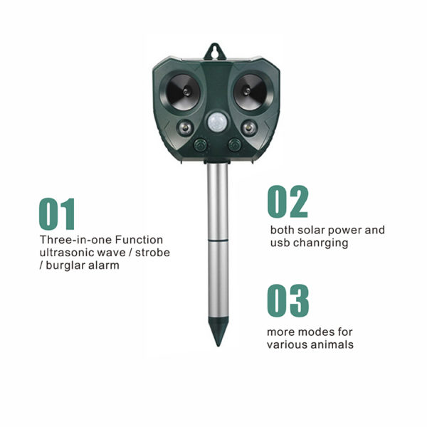 1,Functional: Three-in-one ,ultrasonic wave / strobe / burglar alarm