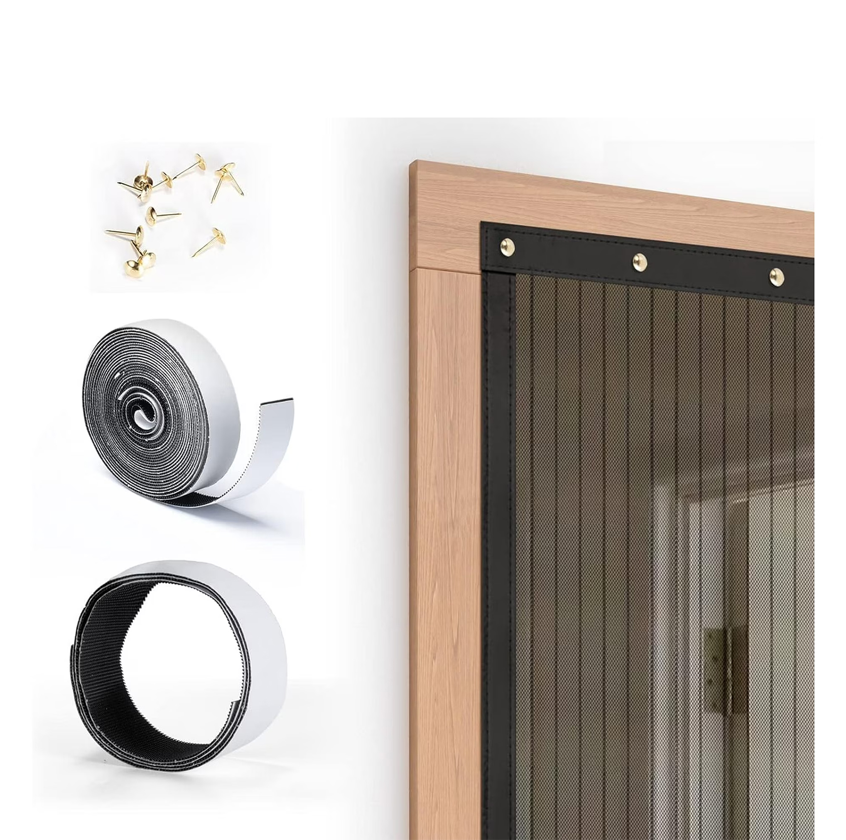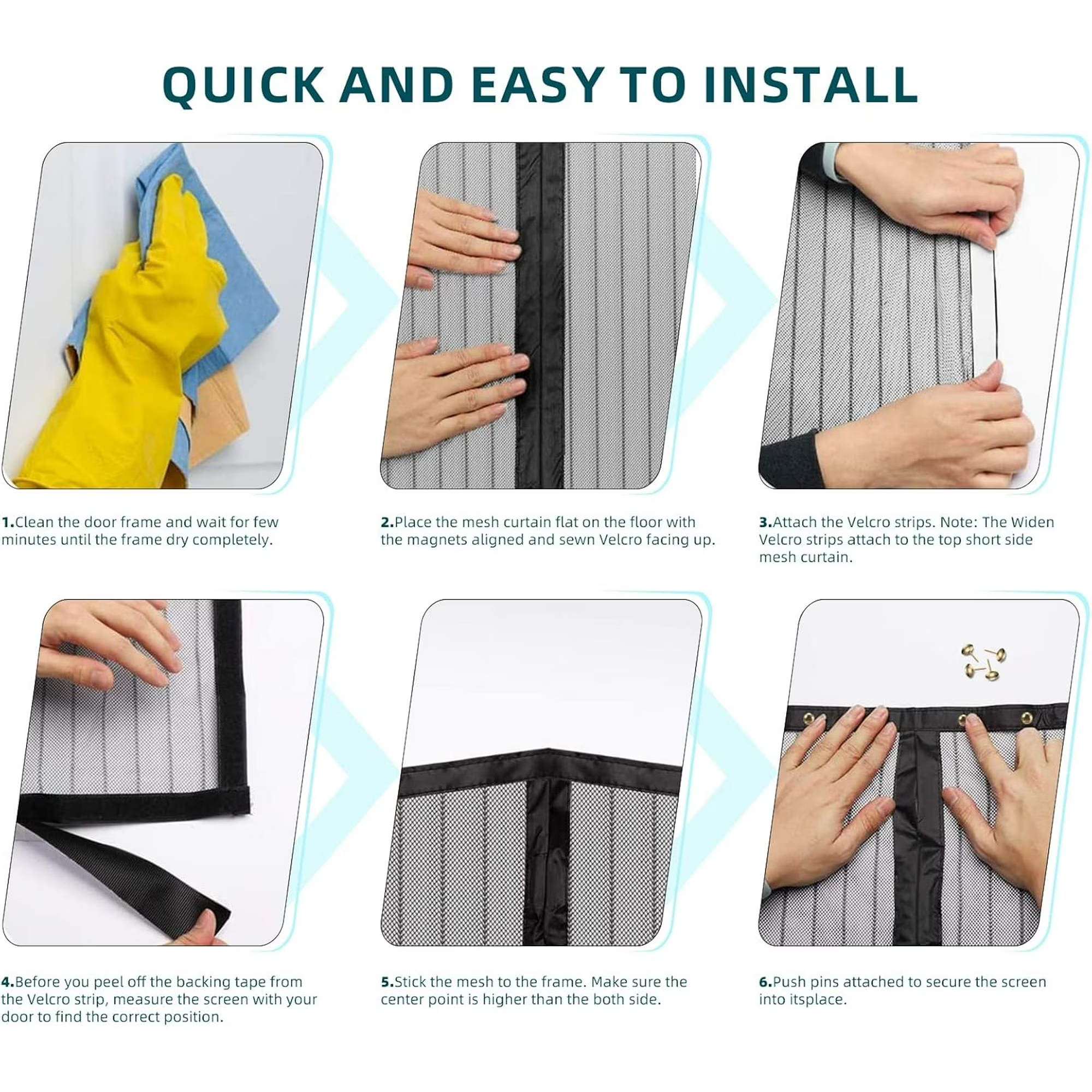 Comes with adhesive Velcro strips or optional push pins, allowing quick installation in minutes without drilling or damaging door frames.