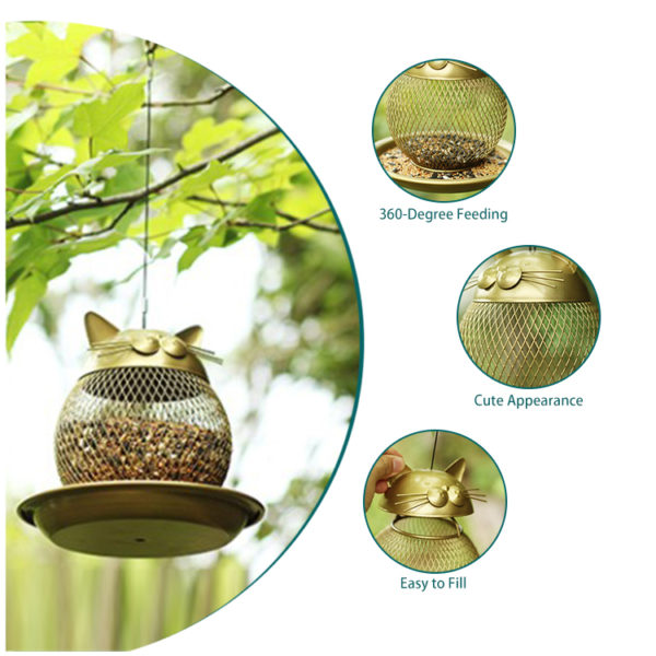 2.High quality—Anti-Rust Iron, The Bird’s feeder Is Made Of Heavy-Duty Iron, Fully Assembled And Ready To Hang, Can Be Used For Many Years. Lift-Lid-Design To Avoid The Rusting Of The Lock
