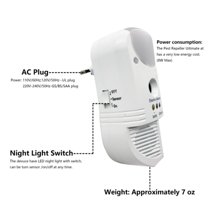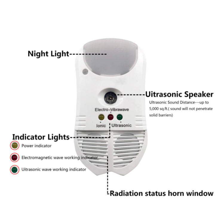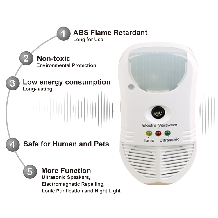 4,More function– Ultrasonic speakers,Electromagnetic repelling,Ionic purification and Night light function