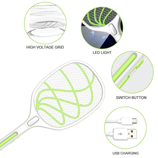 switch ON, press button, Hold the mosquito racket and swing it. then release the button.