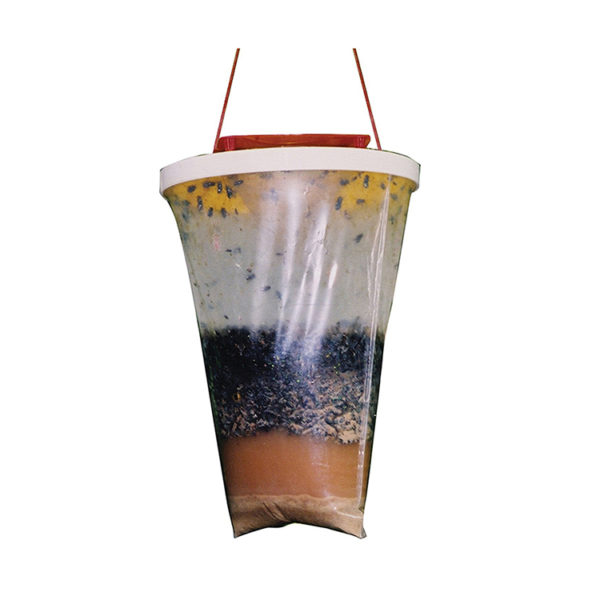 The trap consists of a two-layer durable plastic bag with a scientifically designed molded plastic entry structure that prevents escape. A powerful water-soluble lure is included; you simply add water to the trap and hang it outside. The Fly and Insects are lured by the lure scent and fly into the bag through the yellow entry structure. Once the trap is full, the top cap closes shut and the entire trap can be placed in the garbage.